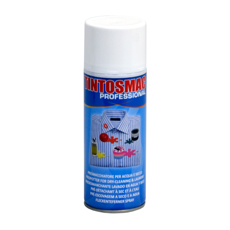 PRETRATTAMENTO VELOCE per lavaggio ad Acqua ed a SeccoPer un pretrattamento veloce dello sporco dei colli e polsini sia nel lavaggio ad Acqua che nel lavaggio a Secco (con Percloro) è consigliabile utilizzare lo spray Tintolav® TINTOSMAC: il presmacchiatore ad ampio spettro da utilizzarsi prima del lavaggio. • Facile da usare Modalità di utilizzo: N.B. Utilizzabile sia prima del lavaggio ad acqua che in percloro |
